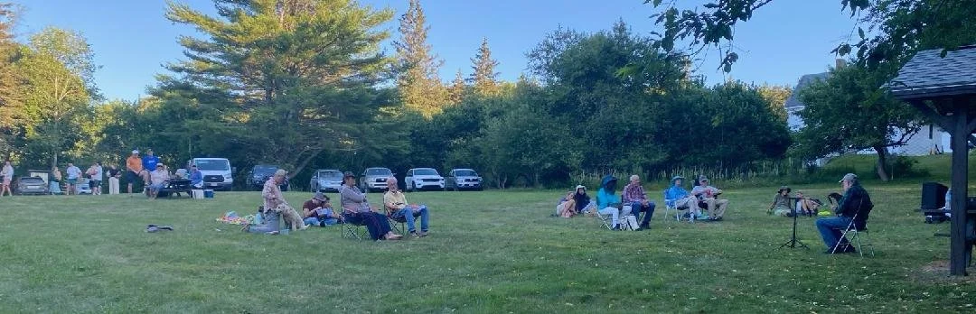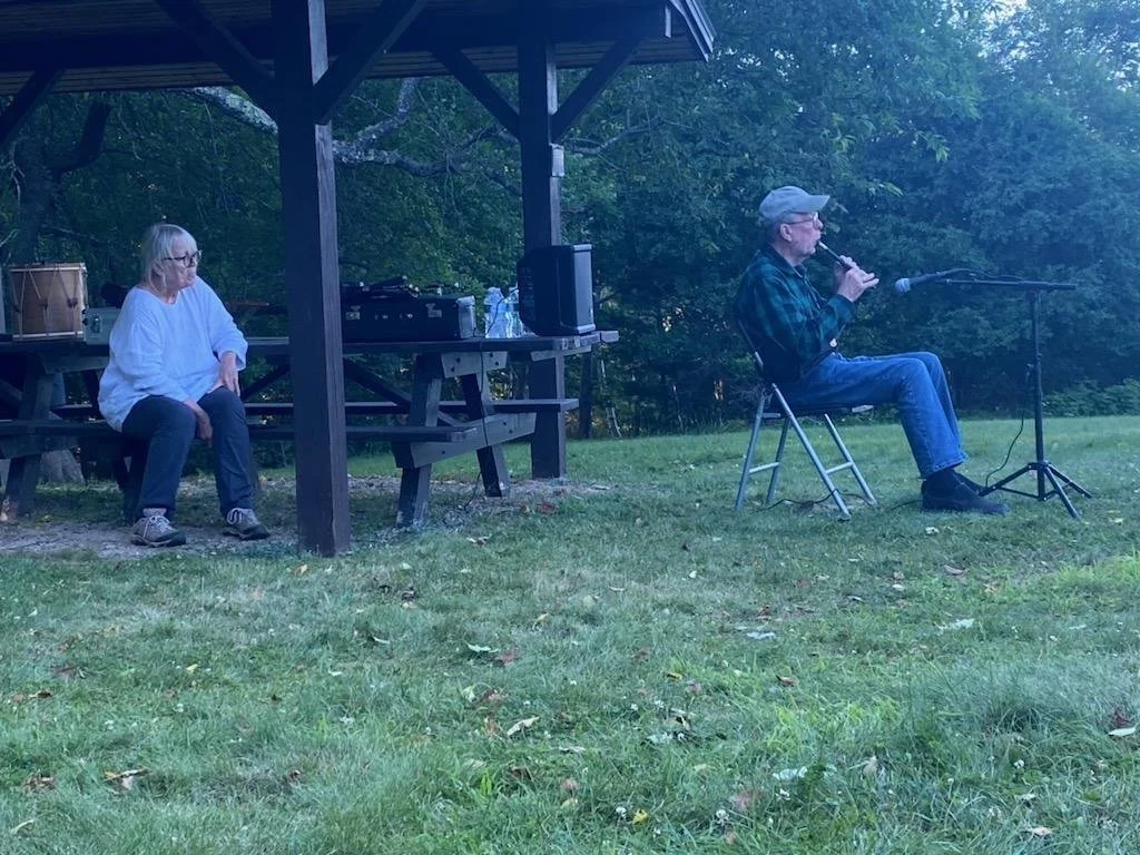 Tom Seymour serenaded a crowd under the newly roofed pavilion with his Northumbrian small pipes as well as Scottish small pipes.